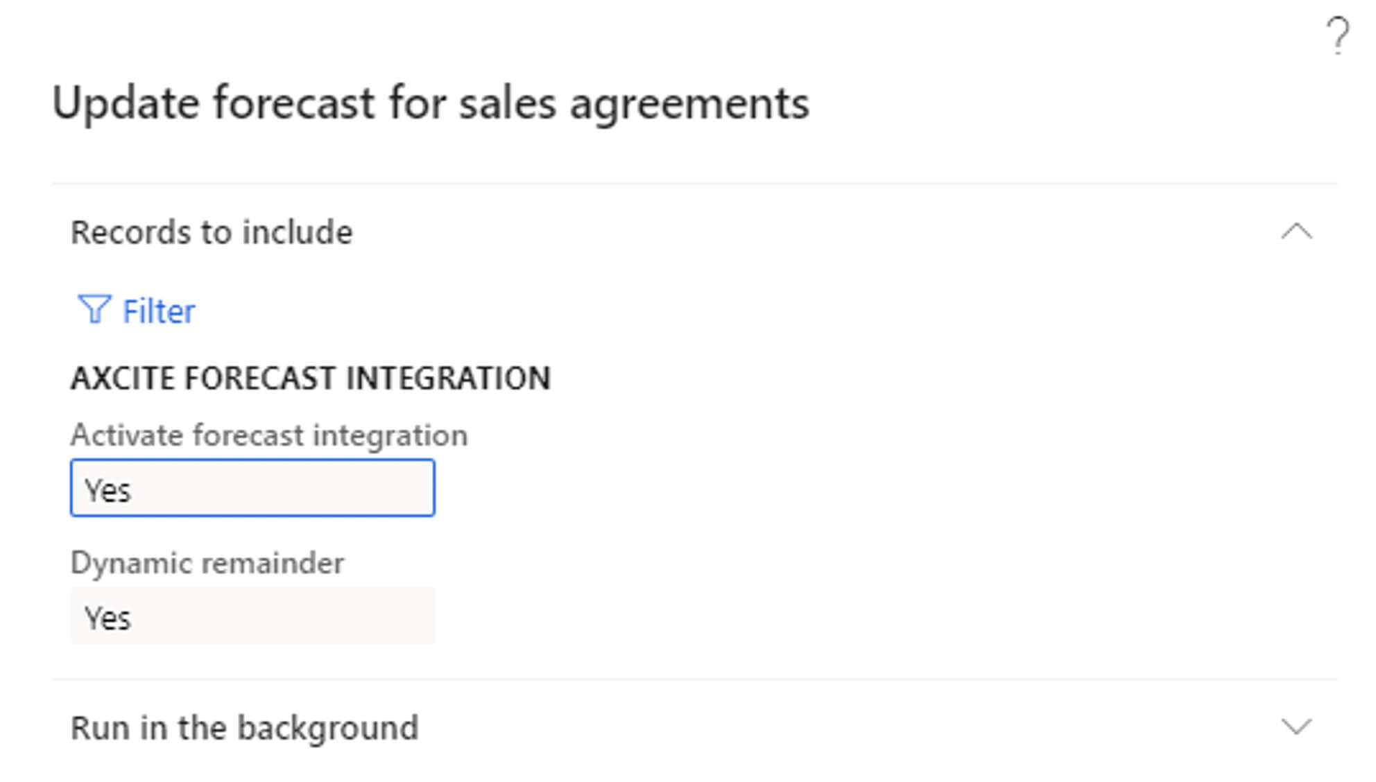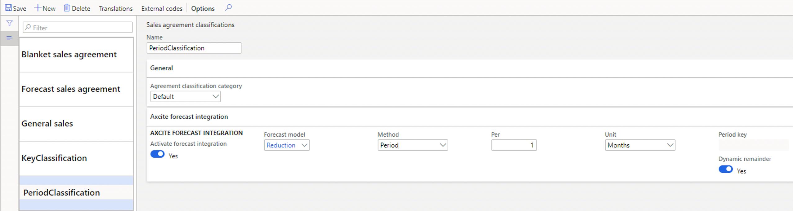 Figure 1: A new tab has been added to ‘Sales agreement classifications’ where you can enable the forecast function – which is called Axcite Forecast Integration – and specify how it should work for any given classification.