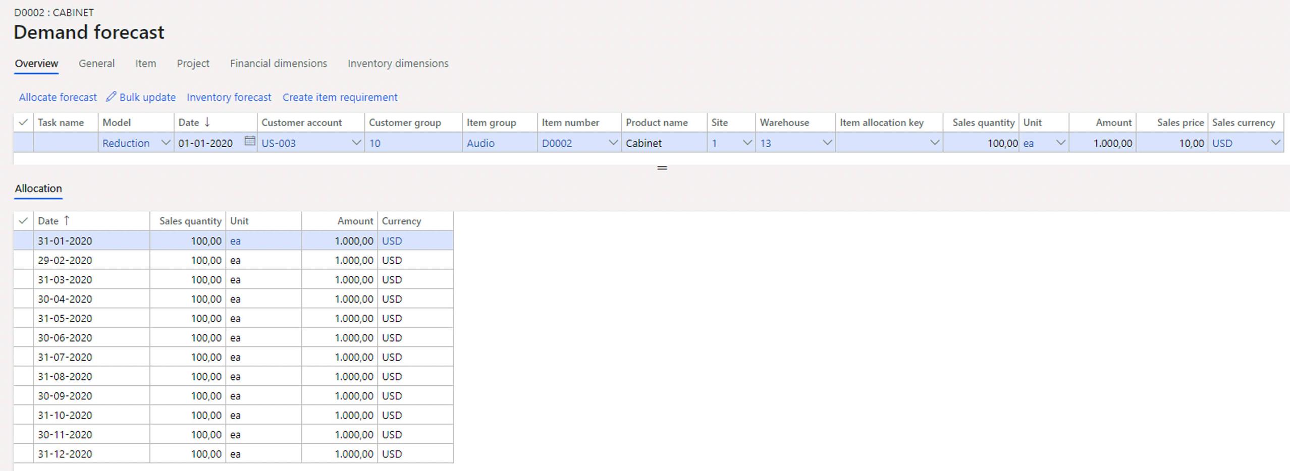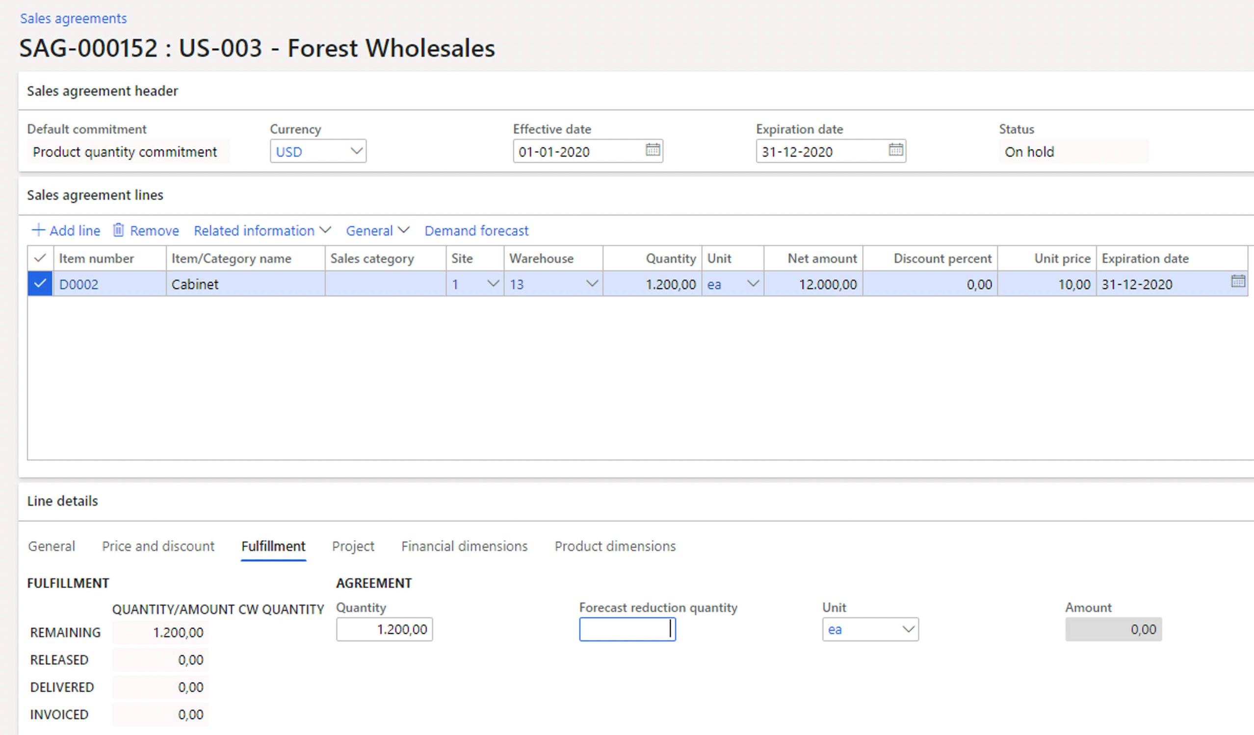 Figure 3: The demand forecast then looks like this for this sales agreement.